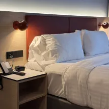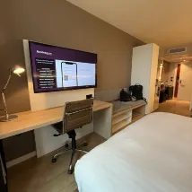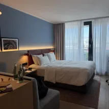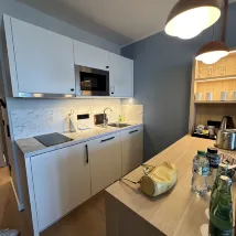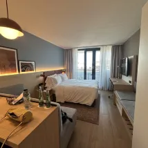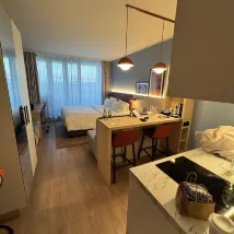 Stayed for 5 nights during my solo travel. It was a lovely spacious studio room with decent kitchenware. There was no daily room cleaning service and make up room only performed on my forth night, which they informed me as I checked in. Attentive staff at concierge who efficiently serve my needs and questions. Delightful breakfast with wide range of food and drinks. However, not the most convenient location even though it looked close to public transit station from the map. Takes some walking (10mins) to reach to closest tram or train station, and the walk was not for carrying big suitcases.
