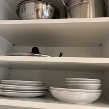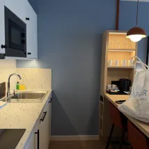 Near a mall with huge supermarkets. Neighborhood feels safe. Not too far from the train station (despite some walk). Hotel room has a full set of cookware and cutleries, as well as fridge and dishwasher. Very convenient to cook when you don’t want to dine out.