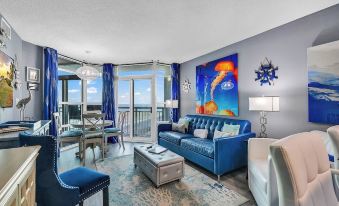 Welcome to our stunning oceanfront retreat! This beautiful 1-bedroom sanctuary located on 9th floor offers views of the mesmerizing ocean waves right from your own private balcony. As you step in you'll immediately be greeted by the sounds of the sea and the gentle ocean breeze. The living area is furnished with comfortable seating, perfect for relaxing after a day of beach combing or exploring the local attractions.The bedroom boasts a plush 2 queen-sized bed adorned with luxurious linens.