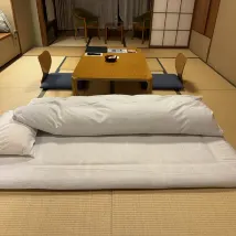 La chambre est une chambre de style japonais avec des tatamis. Elle est propre et bien rangée et n'a pas l'air vieille. Le personnel de service vous aidera à fabriquer le matelas la nuit.