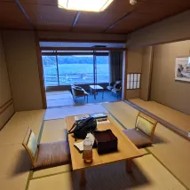 Magnifique onsen dans une grotte avec vue mer , malgré que ce soit un très grand complexe j’ai trouvé une certaine fluidité,chambre avec une vue sur le port , je recommande