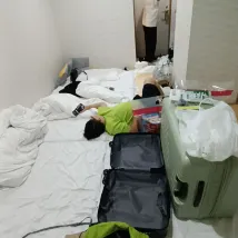 Des petits cafards se cachent sous le tatami. L'espace est très restreint. Ne réservez cette chambre que si votre budget est limité. Sinon, il est recommandé d'augmenter votre budget. L'agencement des chambres adjacentes est correct. Des employés japonais et australiens sont présents au comptoir. Nous pouvons communiquer avec eux grâce à un logiciel de traduction. Comptez environ 13 minutes à pied pour rejoindre l'hôtel depuis la station de monorail Kenchomae. En cas de pluie, il est plus rapide d'appeler Uber (environ 6 minutes).