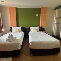 Clean room, and easy access, but the wi-fi on the 5th floor was a total disaster. Basically didn't work most of the time, and when it did give a signal, it was one-bar, glacial speed - totally unable to do anything with it). If you need to do any work on your computer, this is not the hotel to stay at. Also, the shower head in the bathroom was very low, hard for a six foot foreigner to have a good shower. The breakfast was your standard Thai breakfast, with boiled rice soup and fried rice, and fried eggs, etc. - perfectly adequate but nothing to write home about. The best part is the location, right across the street from a lovely park, which is actually operated by the Thai Army - with bike lanes, walking areas, etc. and very clean. and a huge lake.
