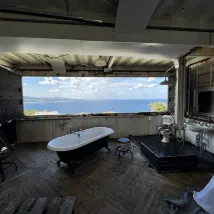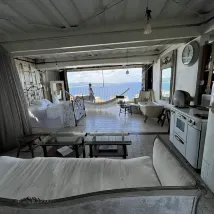 Its a small newer 2 story home in a development of ~20 the same, no garages. Maybe 70m2. Partial ocean views from 2nd floors, but separated from the seaside by other resort homes or trees. No beach here anyway, it's all rocks and shrub. Concrete pavement there but the short road going in is undeveloped dirt road. 2 bedrooms, 2 little beds each, on 2nd floor. 1st floor nice little living room with tv and kitchen, but sofa is not sleepable. Only problem is no bathroom upstairs and have to walk down dark steep stairs at night. Also not much for shopping or food nearby, have to drive ~20 min for grocery or fuel.