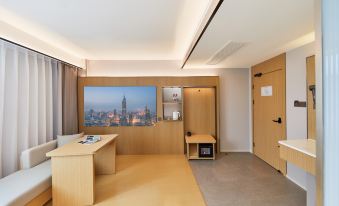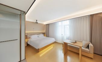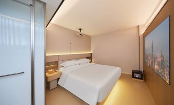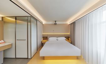 設施:有中央空調,電動窗簾,小度音箱,大投影,小冰箱,吹風機,燒水壺,桌椅牀頭櫃,一次性毛巾浴巾牙刷梳子,小飲料礦泉水