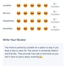 The hotel is perfectly suitable for a place to stay if you have a late or early fly. The owner is extremely helpful and friendly. They provide free ride to the hotel so you don't have to worry about anything😀