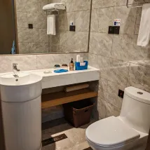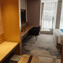 La chambre d'hôtel est spacieuse et entièrement fonctionnelle, avec un petit réfrigérateur. J'ai été très satisfait de ma chambre, à l'exception des rénovations au rez-de-chaussée qui ont affecté la livraison de plats à emporter. Le personnel de la réception était efficace et serviable, et les installations de l'hôtel étaient plutôt complètes, avec notamment un parking gratuit et une salle de sport. Il y a aussi une laverie, mais elle n'est pas située dans le même bâtiment, ce qui était un peu gênant, et je ne l'ai donc pas utilisée. Dans l'ensemble, j'ai été très satisfait de mon séjour.