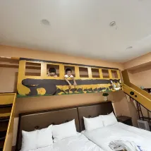 民宿點很不錯,離夜市、火車站很近,到民宿門口的感覺很不錯,有一種回到家的感覺,門口有腳踏車、溜滑梯還有各式小車供孩子們玩耍👍,一樓供應點心和冰淇淋,孩子的最愛😍我住的房型是房內龍貓滑梯,覺得滑梯角度有點偏太直,角度可以再斜一些會更好,但這應該也無法做改善,隔音不錯,浴室也很乾淨,冷熱水比較不好調到適合的溫度,除此之外,其他都很不錯。最驚艷的是他們的早餐,我覺得超棒,中式、西式、麵包、沙拉、優格、養樂多、蛋糕甜點都有,第一次住到這麼大方供應早餐的民宿。是會想二住的民宿❤️