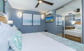 The contemporary living room and kitchen will provide an elevated experience. The spacious, fully stocked kitchen, full-size washer and dryer, and extremely clean condo will make you feel right at home. The bedroom is decorated with contemporary, tastefully island style furnishings. The lovely bedroom has a custom floating nightstand, king-sized, Stearns & Foster luxury collection mattress, and air-conditioned bedroom which ensures a restful sleep.