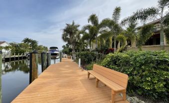 Location, location, location! NEVER FLOODED! Gorgeous Custom Built 2 story Waterfront Pool and jacuzzi spa home, Turnkey Furnished. Located on Prestigious Mahogany Tree Lined 18th Ave. South in Aqualane Shores. Walking distance to historic 3rd Avenue, the Naples Pier and a few minutes drive to 5th Avenue South. This Home Comprises 3 king Bedroom suites, 1 Queen Bedroom Suites, 4 Full Baths, 2 Half Baths, Master Suite on First Floor with Indoor and Outdoor Rainhead Shower, separate his and her closets, His and Her Vanities and Waterclosets with Bidet and Jetted Tub. Family Room has Zero Corner, Impact Sliding Glass Doors to let the outside in! Solid Wood Plank floors and Custom Beam Ceilings in great room. Large Viking Wine Closet, Gourmet custom Kitchen with Wolf double oven and 6-8burner gas cooktop. Full size Subzero refrigerator, and full size subzero freezer with icemaker and Custom Outdoor Kitchen with Built in Gas Grill, refrigerator drawers, outdoor TV, and bar. 75 Foot Boat Dock on canal with Direct Gulf Access via Naples Bay! Beach is within walking distance to the West and Naples Bay is to the East. Saltwater Heated Pool and Spa maintained weekly. This home has every luxury touch you could ask for. Beautifully landscaped terrace with travertine marble tiles leading out to the pool and boat dock. Linens, towels, and bathroom amenities all provided. If you forgot something, we probably have you covered! Spacious 3 car garage, one of the highest homes in the neighborhood. NEVER FLOODED!!! A true walker and boaters dream. Bring your own boat to launch or rent one nearby at Naples city dock. Take advantage of the water all around you with easy access to the beach or downtown . Many renters rent a golf cart for the month, they will drop off and pick up right at your door. Three king bedroom suites and one queen bedroom suite all with their very own private bathrooms, and updated TV’s with cable and Internet provided. Spacious master bedroom is on main level with only a few stairs to get in from the front porch or garage. Bring the whole family, outdoor dining seats 20 under the covered lanai. Vimeo tour under 611 18th Ave S, Naples, FL 34102About pets:No pets allowed, service animals permitted.About checkOut:Check out before 10:00 AM.About children:Children allowed: ages 0-17.Great for Families of all ages!.About customRules:Please strip beds of dirty sheets and put all linens and dirty towels in laundry room. Rinse off all sand before entering house. Leave shoes downstair.Please observe garbage days and put out cans accordingly. Quiet hours outside are between 10 pm and 8 am. Turn off outside lights during the day.,Please water all potted flowers outside in dry months. Please return all pool and water items, bikes, etc. where you found them and rinse off sand..About checkIn:Check in after 4:00 PM.About smoking:Smoking is not permitted.No Smoking Allowed anywhere on property..About minBookingAge:Minimum age to rent: 30.About events:No events allowed.Quiet Neighborhood, no parties..