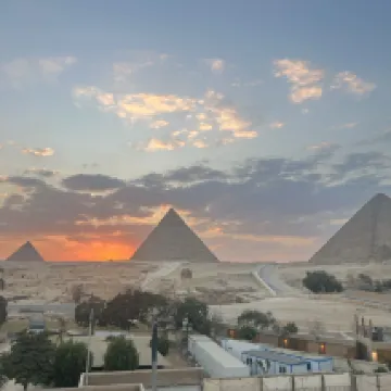 Situé juste en face de l'entrée des pyramides de Gizeh, l'espace petit-déjeuner sur le toit est ouvert au public, digne de son nom. Le lever et le coucher du soleil y sont spectaculaires, et le spectacle de lumière, organisé trois fois par semaine, peut être admiré gratuitement depuis le toit. Le monsieur qui sert le petit-déjeuner et la dame qui prépare les falafels chauds sont les meilleurs membres du personnel. Cependant, pour prendre un Uber, il faut s'acquitter des nombreux frais de stationnement inversé et marcher trois minutes jusqu'au parking.