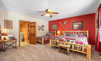 *Three traditional bedrooms: These rooms are ideal for guests who prefer the classic comfort and seclusion of a private bedroom. Each room is tastefully decorated to complement the rustic charm of the cabin, providing a serene retreat at the end of each day. With spacious closets and dressers, you’ll have plenty of room to unpack, settle in, and feel right at home.