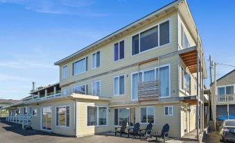 The bay and Pacific Ocean are right out the door. Footpath to the water is just a few steps away. We have a quiet sitting area with Adirondack chairs to sit and watch the ocean.