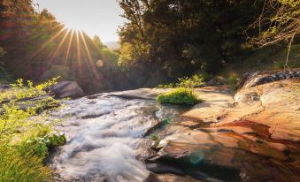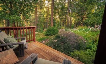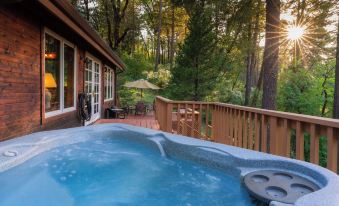 Historic Nevada City is just a 10 minute drive. Dine, shop, hike and explore the area. Or just enjoy a slow and peaceful day at the cabin, lying in the sun, sitting near and floating in the creek, reading or napping by the fire or on chaise lounges. Evenings and sunsets are sweet in the fading light of the day - while enjoying a glass of wine on the deck or soaking in the hot tub.