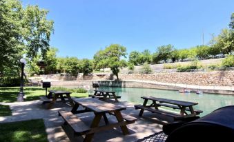 Step outside and enjoy all the perks of being right on the Comal River! Relax at the water’s edge, take a refreshing float, or enjoy a picnic at one of the riverside tables. Charcoal grills are also available for a fun cookout with a view. Located just a short walk from downtown New Braunfels and right across the river from Schlitterbahn, this condo puts you in the heart of all the action while still providing a peaceful retreat. Whether you're here for tubing, exploring local shops and restaurants, or simply unwinding by the river, this is the perfect spot for your next getaway!