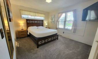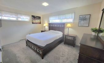 first floor: master bedroom w/ large walk-in closet, dresser, 40" Smart HDTV, full bathroom