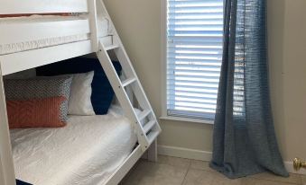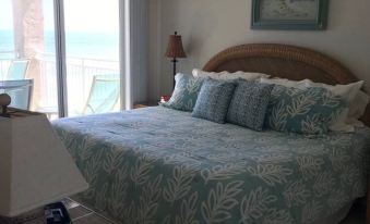 The master suite has a king bed, it's own bath and direct oceanfront view with TV and balcony. The second bedroom has a queen bed, and the third bedroom has twin/full bunk bed with it's own TV.