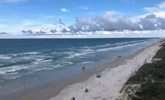 L’aéroport le plus proche est Aéroport Daytona Beach International, situé à environ 34,9km de l'hôtel soit à peu près 29 min en voiture..Quel est l'aéroport le plus proche de Fully equipped condo that’s right on the beach! ?