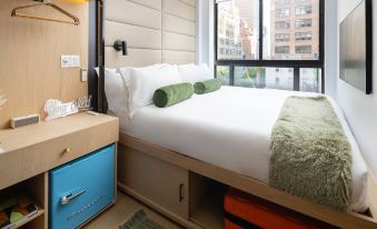 The Little Charlie is a great hotel. The staff is very friendly, the spaces are very clean. We stayed in a king bedroom. The bed is pushed up against a wall, so only 1 side is available for entering & exiting the bed. The bed is incredibly comfortable! There is a good amount of noise from the street & the hotel provides earplugs. We didn't need them, since we can truly sleep through anything. The shower had low water pressure. The neighborhood is centrally located & very easy to grab a cab or walk to the subway. In the end, I think the room is best suited for 1 person.
