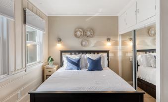 This 775-square-foot upper unit blends cozy charm with modern comfort. With 2 bedrooms and 2 bathrooms, Edgewater D is perfect for a relaxed coastal stay. The spacious primary bedroom features a queen bed and ensuite ¾ bath, while the guest room includes a daybed that converts into a king—ideal for flexible sleeping arrangements. Step out onto the shared balcony from either room and unwind in the ocean breeze. Thoughtful extras like high-speed WiFi, all linens, and beach towels make it easy to settle in and start living the beach life. Guests will also enjoy access to a dock with an outdoor table and chairs, shared between all five units in the building. Please note that no boat slips are available provides an upscale experience with services that elevate your stay and save time so you can enjoy every moment. Guests have access to a 24/7 support team and a tech-enabled concierge to book services, such as fridge stocking, mid-stay cleanings, and private chefs. For anything you need (or never knew you needed), we’re at your service!