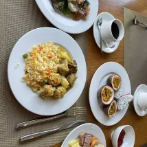 Love Le's Cham free bike and private beach service. We get free rides to the beach, get our own beach chairs and enjoy the waves. The breakfast selection is good too. A good combination of local and international food.