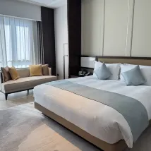 Absolutely amazing! Beautiful hotel and for a fantastic price. The hotel is located in the old downtown of Ningbo which is a lively and busy area but you would never know that from inside the grounds. It’s like a park. There are beautiful walkways and gardens, pagodas you can sit in with fishponds and swings…stunning. The interior of the hotel is traditional Chinese and is grand. The service attitude is wonderful and everyone is so helpful and kind. My only suggestion would be to include a breakfast coupon with all room purchases, even if someone just wanted to grab a coffee in the morning, since this extra thing would be an absolute cherry on top of the whole experience. Other than this, I can say for certain I will stay here again!