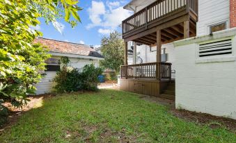 The recently renovated property has an open modern Victorian interior design. The kitchen and the bathroom have been updated with new appliances and a modern look and feel. It is cool in summer and cozy in the Winter. Both porches and the back garden area are for guests. There are several parking spaces in the long driveway as well as off-street parking.