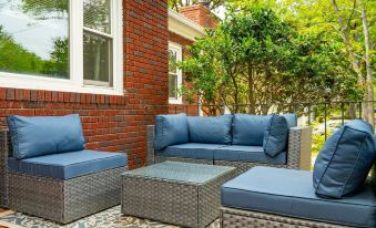 Unwind on the cozy front porch with comfortable outdoor couches—perfect for slow mornings with a cup of coffee.