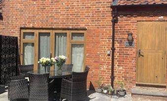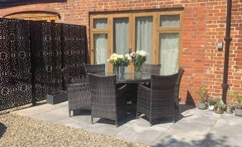 Guests have their own parking and a small patio area outside the main bedroom with a table and six chairs as in the photos. Please note: There is not an enclosed space to let your dog out on its own. The Barnhouse has two step up to the barn door and it is a gravel driveway.