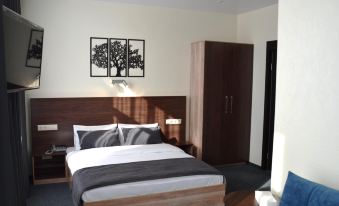 The hotel has 100 modern and comfortable rooms of various categories. Each of them is equipped with necessary furniture, a bed with orthopedic mattress, safe, climate control system, TV, telephone, work area, tea station. The private bathroom comes with a hairdryer, a set of towels, slippers and toiletries. Wi-Fi is available throughout the property.