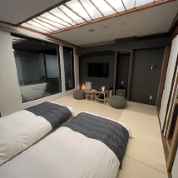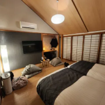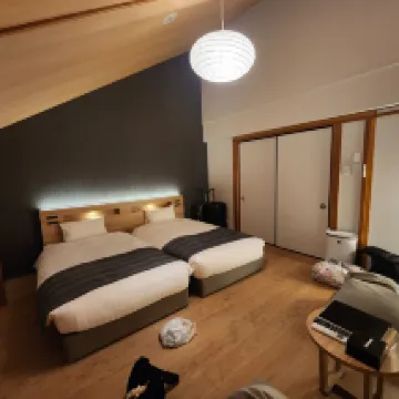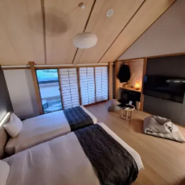 We had a delightful one-night stay at AWA. It's located a 5 minute drive from the center of town, but provided so many activities that the hotel itself felt like a destination. The rooms were clean, comfortable, and spacious. We enjoyed the free-flow Sake, Wine, and beer, as well as the complimentary fireworks, Onsen (private and shared), and self-guided caligraphy sessions. We were also able to borrow bikes (for free) to head into town for some dinner. Our stay at AWA was one of the highlights from our trip.