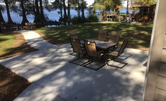 Outdoors we have plenty of parking with a awning large enough for either two vehicles or two boats. We have a brand new pier (2023) with two boat slips. We offer outdoor electricity for charging your boat and water for cleaning your boat. You have your own personal fish and duck cleaning building right on the water. Our backyard is one of the larger backyards on the lake offering plenty of room for all your outdoor activities and also includes a fire pit. At the end of your day, enjoy our pier and deck combo for relaxing with some more wonderful fishing and second to none beautiful sunsets.About pets:No pets allowed.About checkOut:Check out before 10:00 AM.About children:Children allowed: ages 0-17.About customRules:Rates based on 4 guest, add $25 pppn up to 8.About checkIn:Check in after 4:00 PM.About smoking:Smoking is not permitted.About minBookingAge:Minimum age to rent: 25.About events:No events allowed.