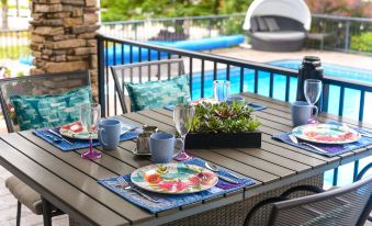 The perfect bed and breakfast! The rooms are spacious, clean, and private. The host serves breakfast daily on the patio. Many choices, including a daily special. You fill out a sheet The day before with any dietary restrictions, etc and pick your breakfast time. The common area between the rooms has everything you might need, from a fridge to extra glasses to board games. They also have a salt water pool. There is ample seating on the pool deck for socializing or relaxing. The private entrance for the room made it convenient to come and go. Lots of parking available too. The host was able to provide lots of recommendations for restaurants, wineries, and activities. We can't wait to stay here again!