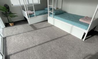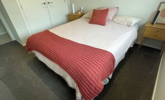 This recently built home boasts 4 good-sized bedrooms, two lounges and two bathrooms. The master bedroom has a luxurious ensuite w/ shower and walk-in wardrobe; two bedrooms contain queen beds, and a super sunny kids bedroom is fitted out with two bunks (4 single beds in total).