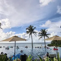 J'ai rendu visite à mon mari et à ma femme. Si vous prenez le bus limousine depuis l'aéroport, le trajet n'est qu'à une heure, donc le trajet est rapide. Le café et l'eau sont gratuits, et les installations et l'intérieur de la chambre sont simples mais bons, vous permettant de vous sentir propre et rafraîchi comme on peut s'y attendre d'une plage. Il existe de nombreuses toilettes pratiques où vous pouvez rester en maillot de bain. L'hôtel est assez spacieux et regorge de plantes tropicales, et il y a des tables et des chaises partout, vous pouvez donc vous sentir libre d'apporter votre propre nourriture. Le buffet de l'hôtel était délicieux. Le pub voisin avec de la musique live était également délicieux et amusant. La plage et la mer étaient magnifiques et j'ai été vraiment impressionné par sa beauté.