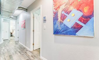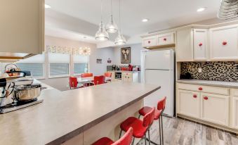 Here you will find exposed air conditioning ducts and a countertop in the kitchen with the appearance of soapstone to give this place a cool lofty industrial look. I was inspired by the retro kitchen dinette to create a more retro look. We wanted to bring back the early days and represent this old building. It's decorated with a lot of character, colors and fun and sure to be enjoyed by everyone who stays with us! Including an old console record player where you can play some of the old vinyl records I have found during this construction process!! There are tvs in 2 bedrooms and the family room. One of the bedrooms makes a great place for the kids to set up their video games and play comfortably on a rainy day or night after the beach. I can promise you, you will find this place to be a great rental and you will want to come back again! The Retro is equipped with fast Spectrum wifi. Internet speed 300mbps.