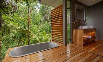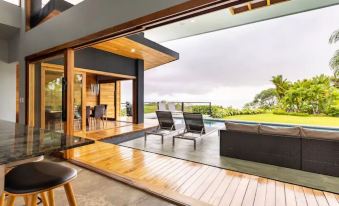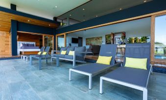 After a day of adventure, return home to unwind with a poolside couples massage, prepare gourmet meals in the sleek kitchen with stainless steel appliances and a gas cooktop, or enjoy a private chef experience. Dine al fresco while watching breathtaking sunsets over the ocean and jungle vistas, then relax by the exquisite pool or cozy up with a movie using the HDTV and fiber-optic Wi-Fi.
