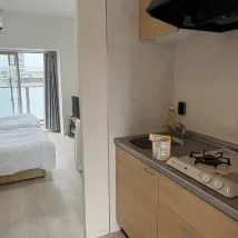 Chambre propre et spacieuse avec kitchenette et réfrigérateur. Lave-linge et sèche-linge sur place également, ce qui est très pratique. Le seul point négatif est l'emplacement, qui est un peu miteux et assez loin des stations de métro.