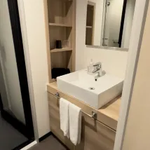 L'emplacement est bon. L'opp est Lawson. Près de la gare de sortie. Le hall de l'hôtel dispose d'une machine à café. Machine à glace et lave-linge au niveau 8. La taille de la pièce est grande. J'adore la pomme de douche. 2 oreillers par personne.