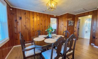 Joy’s Place is a recently renovated cottage featuring all the modern comforts and amenities while preserving its unique charm. After spending time unwinding on the front porch, step into the comfy living room and relax while watching the 50” 4K Roku TV, reading a book, or playing a game. The fully stocked kitchen is a dream for any home chef, equipped with everything you need to prepare delicious meals—from modern appliances (refrigerator, range, microwave, air fryer, slow cooker, griddle, toaster, and blender) to essential cookware and utensils. Coffee lovers, you have found the right place! Whether you prefer drip coffee or single serve Keurig we have you covered (sample of K-Cups included with each stay including regular and decaf coffee as well as hot chocolate). A propane grill is also available on the back patio. The dining area features a table with six chairs and a bar with room for two. In the laundry room, wash and dry your clothes after a long day at work or iron your clothes before an evening enjoying all the area has to offer. Enjoy a comfortable night’s rest in one of the three cozy bedrooms - each featuring memory foam mattresses and 40” Roku TVs. The primary bedroom includes a private full bath with tub/shower, excellent lighting, and hair dryer. The second full bath is adjacent to the 2nd & 3rd bedrooms and includes a shower and hairdryer. Each bedroom includes storage for clothes and two of the bedrooms include a closet with hangers. Larger groups can take advantage of the queen sized sofa bed in the living room. Streaming the big game or traveling for work? We have you covered with 300Mbps+ fiber internet. Joy’s Place is positioned on 1 acre of land with plenty of privacy and enough yard for a game of backyard football or yoga! Whether you’re here for a weekend retreat or an extended stay, Joy’s Place offers all the comforts and conveniences to make your stay unforgettable. Come and experience a relaxing escape in our inviting space!