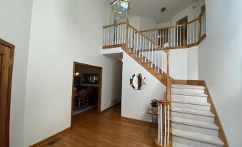 There's so much to do at the retreat if you wish not to step out. Walk the trails, sit on a bench and gaze at the mountains, play a game of volleyball or one of the several outdoor/ indoor games provided, soak in the hot tub, or enjoy the sun and sunrises and sunsets! Ideal for friends and families looking to relax and enjoy time outdoors, this home and property offer a great escape from the hustle and bustle of daily life. Enjoy grilling on your very own deck or relaxing around the fire pit after a day spent hiking Shenandoah National Park, visiting Luray Caverns, or making a splash at Massanutten Outdoor WaterPark in the summer. In chillier months, hit the slopes at Massanutten Ski Resort!