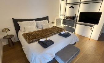 Les 3 chambres de l'hébergement vous invitent à la détente et comprennent un réfrigérateur et un micro-ondes. Votre lit en mousse à mémoire de forme est préparé avec une couette en duvet d'oie et de la literie de qualité supérieure. Les chambres sont dotées d'un balcon aménagé. Un accès au réseau Internet Wi-Fi et câblé est offert gratuitement. De plus, une télévision connectée 43 pouces avec chaînes numériques est à votre disposition pour des moments de divertissement. Une salle de bain privée avec une douche est à votre disposition. Vous y trouvez également un pommeau de douche à « effet pluie » et des articles de toilette gratuits.