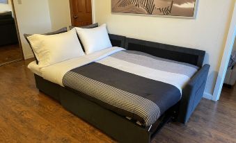 Cute little bungalow 2 blocks from the main road - super convenient! Couch pulls out to a very comfortable double-bed - we had trouble figuring out how to set it up, but it was great once we got it. The unit is very clean, but somewhat dated - it hasn't been "flipped" like some other nearby listings. However, we didn't plan to spend much time there anyway, so it was perfect for us! Street parking was a little tight our first night there, but no issues the rest of the time, and the location is ideal for walking downtown. Definitely recommend!