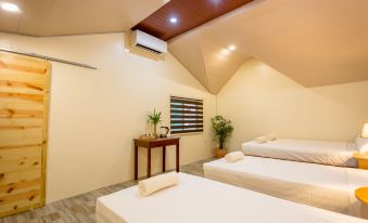 열쇠로 방문 열고 들어가면 퀸 칭 대 1개, 싱글 침대 2개 있어요