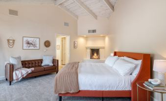 Inside this exquisite abode, you'll find a harmonious blend of sophistication and comfort. The main kitchen, fully-equipped with top-of-the-line appliances, is a haven for at-home creations, while a smaller prep-area and breakfast nook provide additional space to serve and entertain. Large windows throughout the home let in tons of natural light, while the living room boasts a spacious sectional and charming fireplace. And just outside, an expansive patio overlooks the pool below.