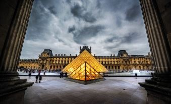 Located in the renowned Louvre District, you’ll be staying within walking distance of the city’s most famous landmarks. The Louvre Museum is just steps away, and the Palais Royal Garden and the Buren Columns are only five minutes away. You’ll also be close to Place de la Concorde, Jardin des Tuileries, Rue du Faubourg Saint-Honoré for luxury shopping, and the Pont des Arts, famously known as the “Lovers’ Bridge.” Notre-Dame de Paris is just 1.5 km away, while Place Dauphine on Île de la Cité is a pleasant 10-minute walk. You can also explore nearby neighborhoods like Saint-Germain-des-Prés and the Champs-Élysées for a quintessential Parisian experience.