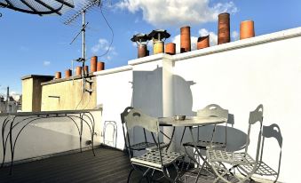 Clean and bright apartment with an excellent rooftop deck. The apartment is small but has efficient use of space, the air conditioning worked very well. The bathroom and shower are great, as is the clothes washer. Outstanding location - very vibrant area with lots of options for places to go for restaurants and drinks. Centrally located for many of the Paris attractions. This VRBO worked well for three single individuals as long as you stay organized. Elevator is very tiny but works well. Written instructions on how to use the stove would be helpful, they were very responsive to our inquiry. Great experience – would recommend.