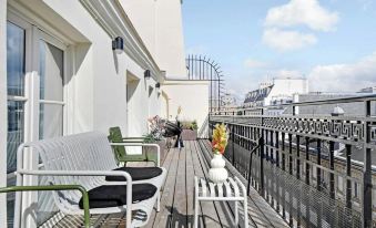 Thoughtfully furnished balconies offering picturesque views and a tranquil spot to savor the Parisian ambiance.