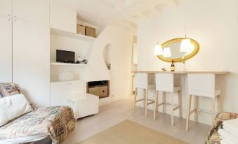 Bathed in natural light, the studio boasts a clever, space-saving layout designed to make you feel instantly at home. Surrounded by quaint cafés, restaurants, and markets, the apartment is tucked away on a quiet, historic street once home to none other than D’Artagnan himself.