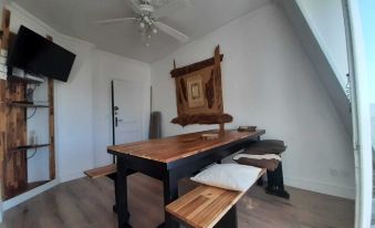 2 chambres : 2 lits superposés et 1 canapé convertible